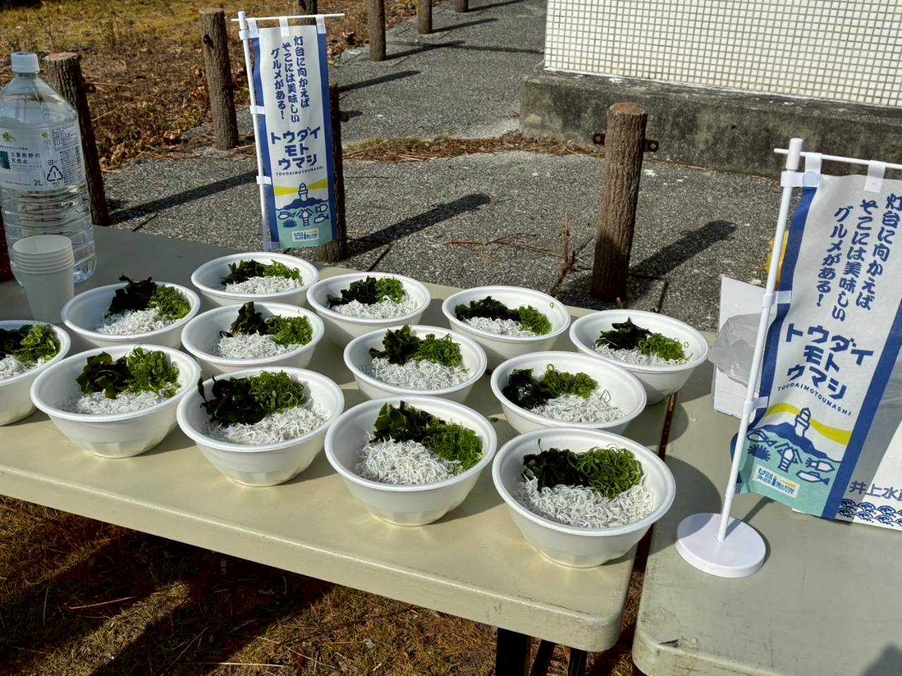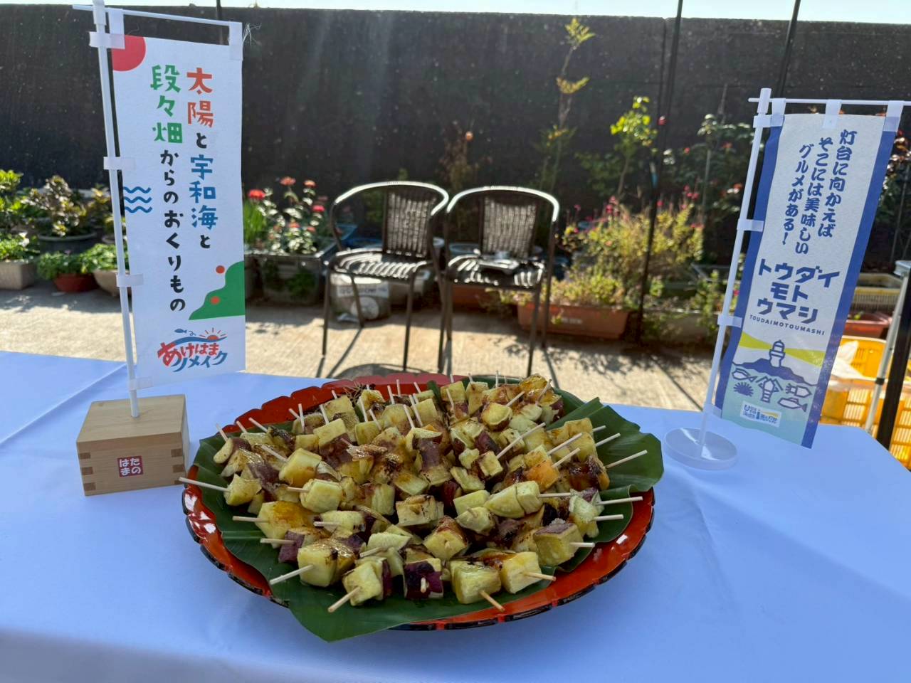 今回のコース上には、合計6か所のおもてなしエイドを設置。この地域の名物である早生ミカン、柑橘ジュース、サツマイモを使ったブリュレに加えて、灯台周辺の宇和海で漁獲された「ハモの天ぷら」、「釜揚げしらす丼」、「アイゴ×明浜レモンの天ぷら」など、地域の海が育んだ極上のおもてなしメニューがずらり。疲れたランナーの心と胃袋を満たします。