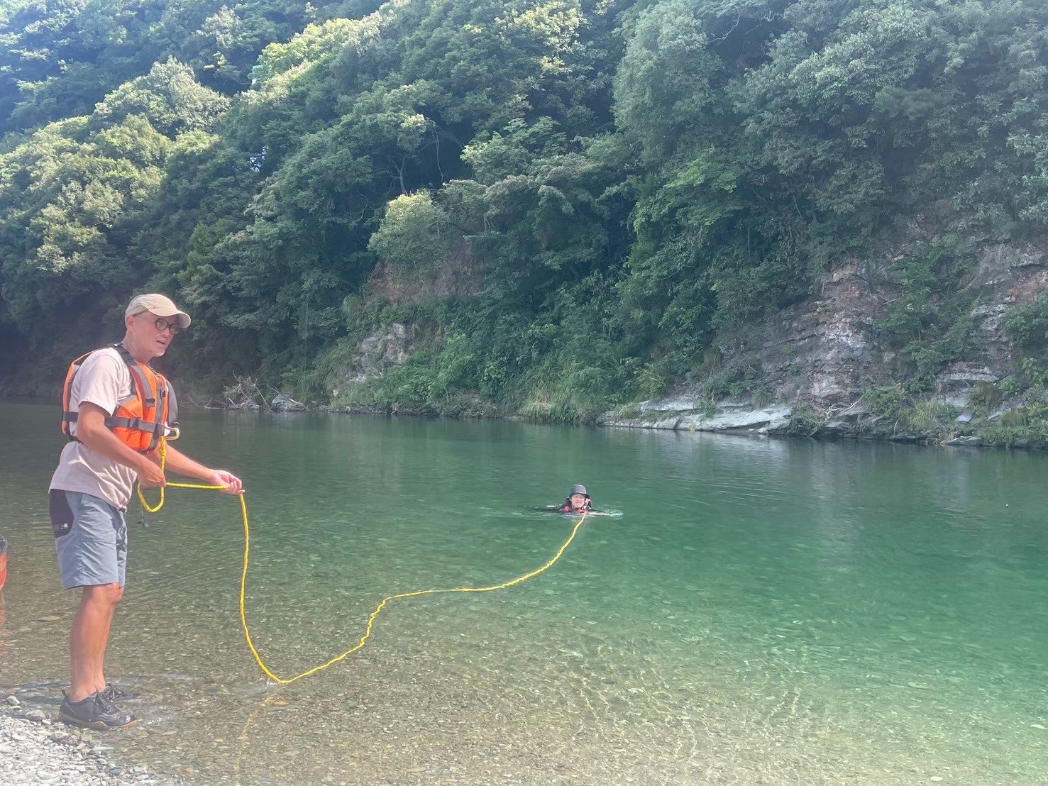 川遊びではフローティングアイテムを着用し引っ掛かりが生まれそうな場所では遊ばないようにしなければいけません。今回の座学では海や川に潜む危険を参加者の方に知ってもらうことができました。