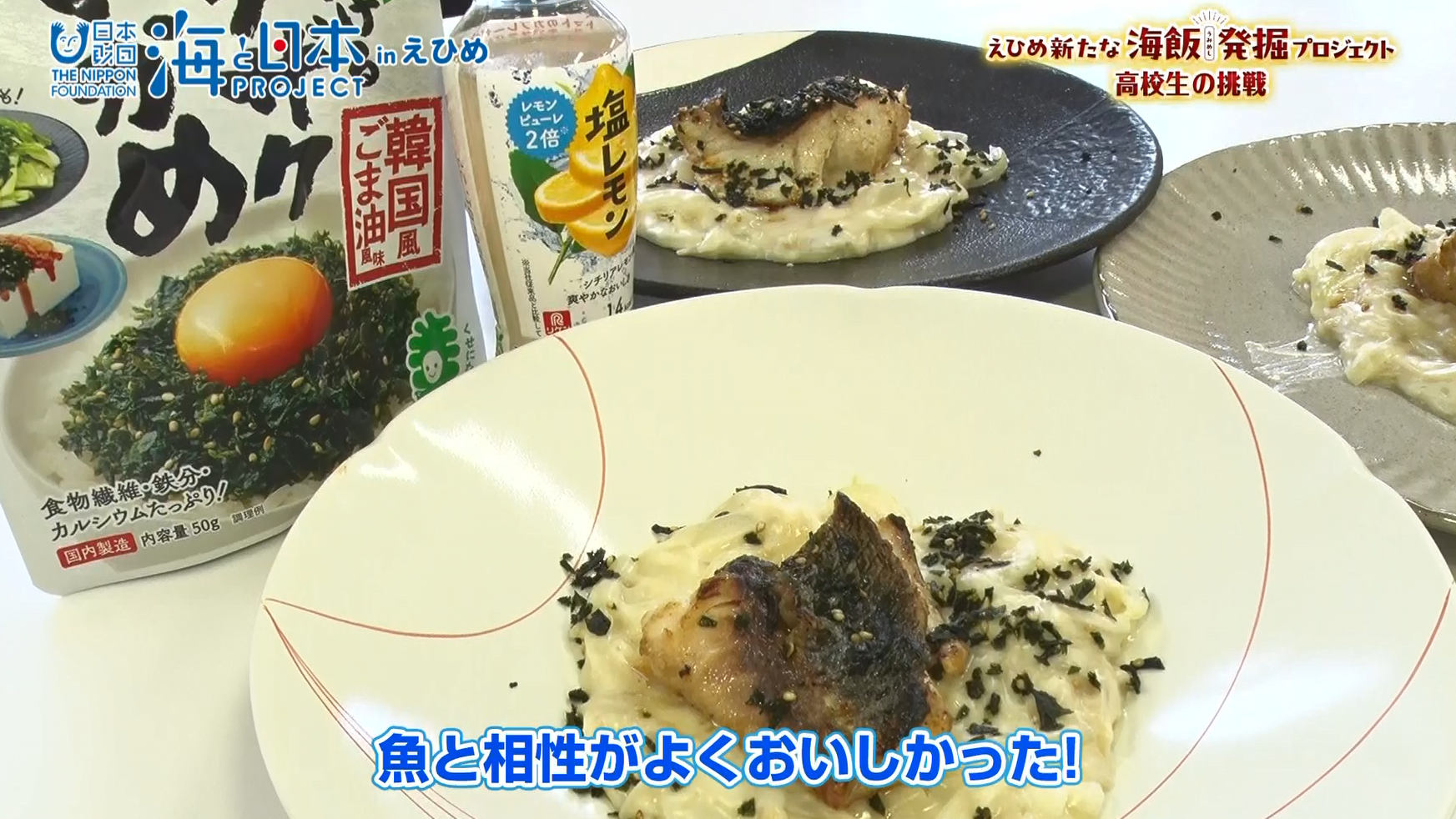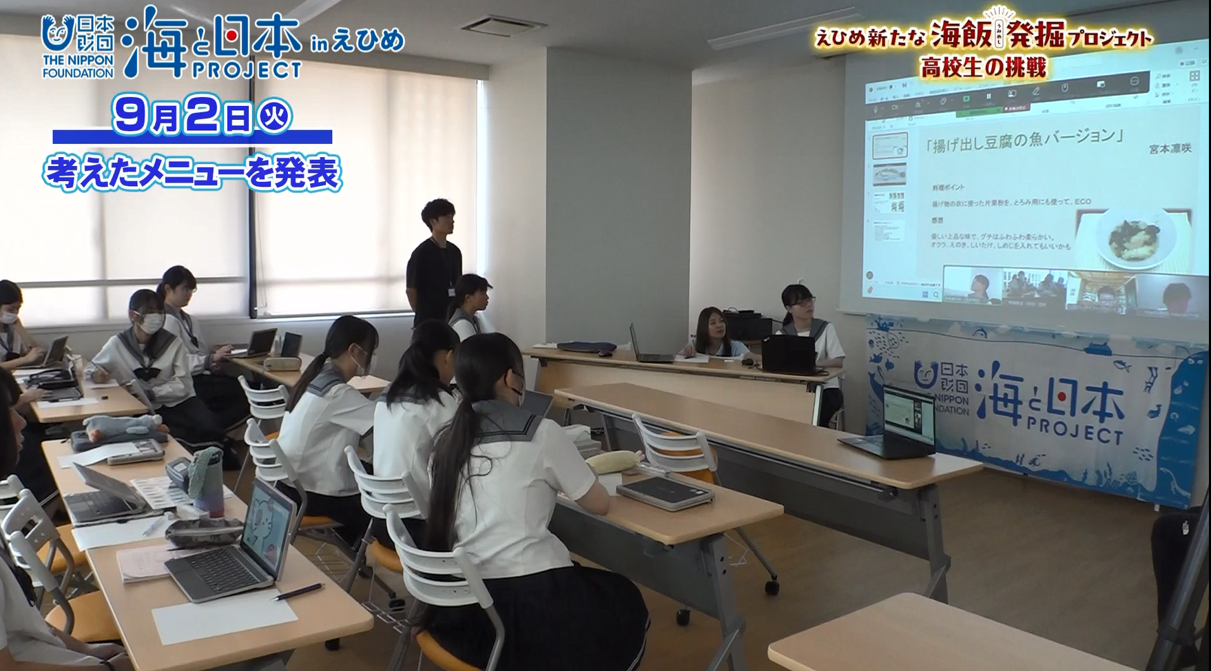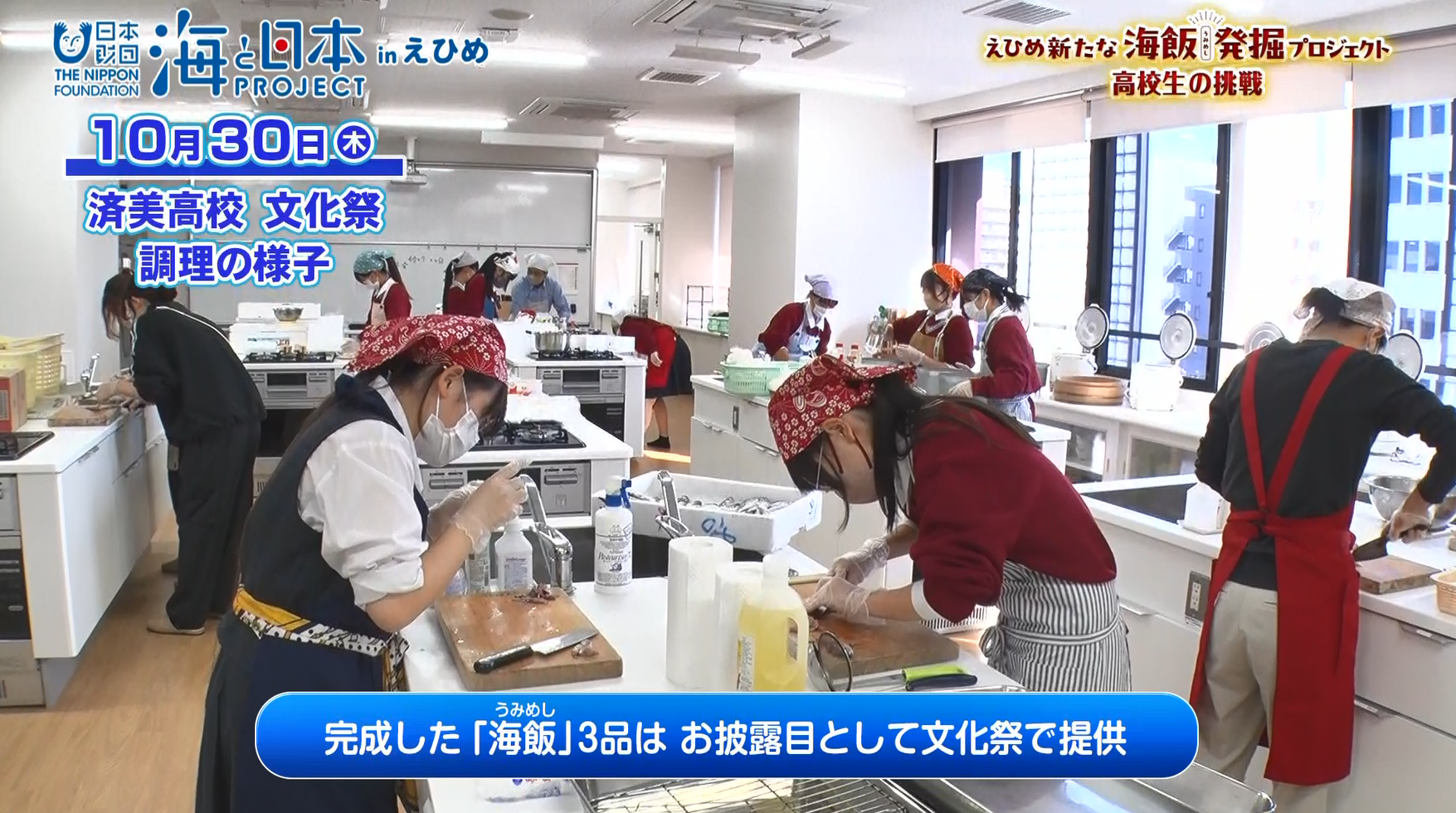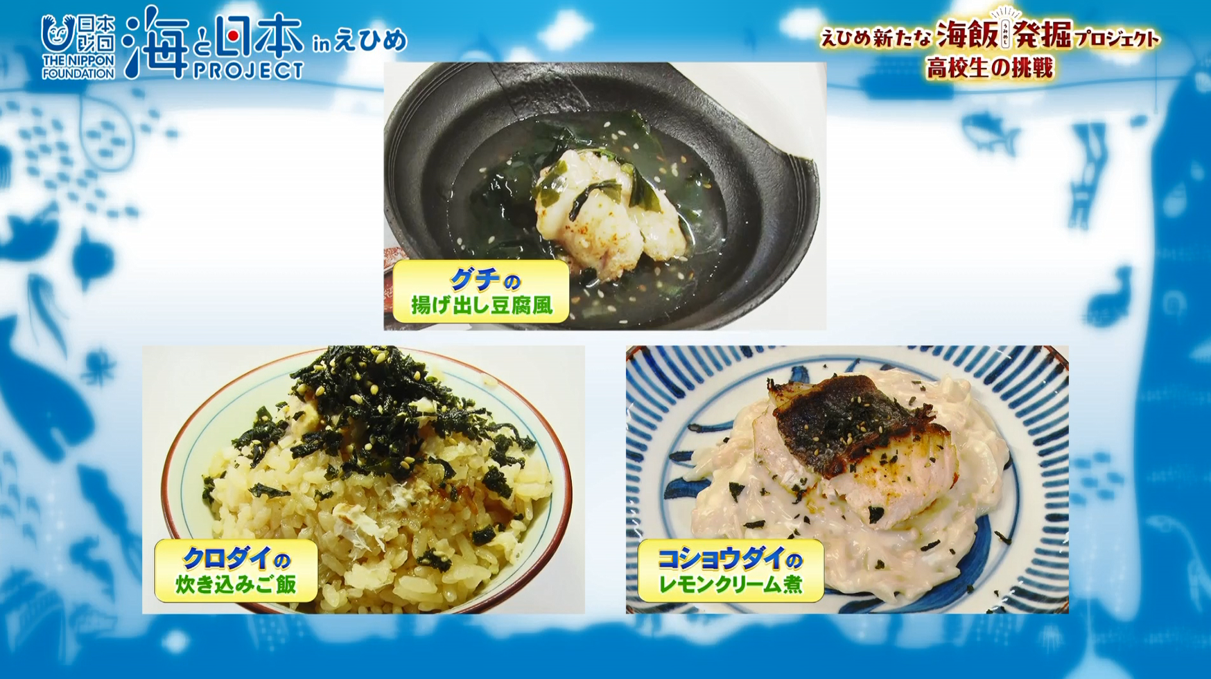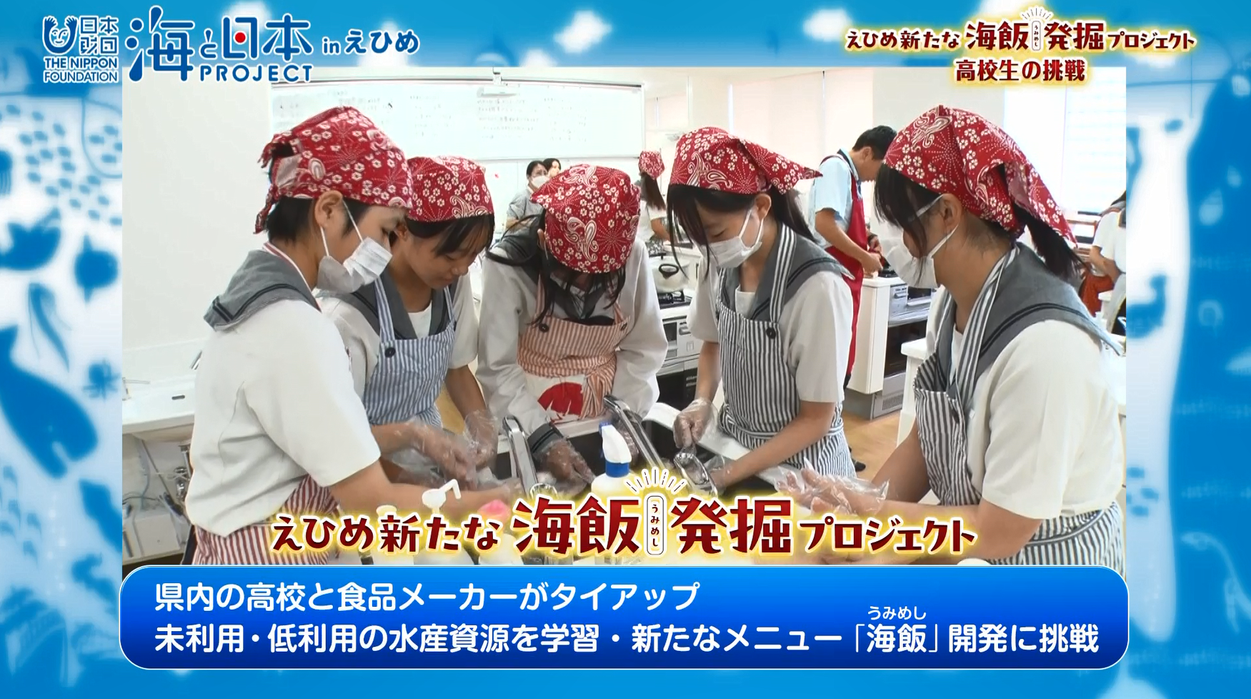 2025年7月から2025年10月にかけて、済美高等学校食物科学コース2年生24名と理研ビタミン株式会社がタイアップし、海の環境変化に伴う漁獲量の減少や水産資源の種類の変化など、地元の海の課題について学んだうえで、利用される頻度の少ない水産資源である低利用魚を使った「新たな海飯メニュー」を開発しました。