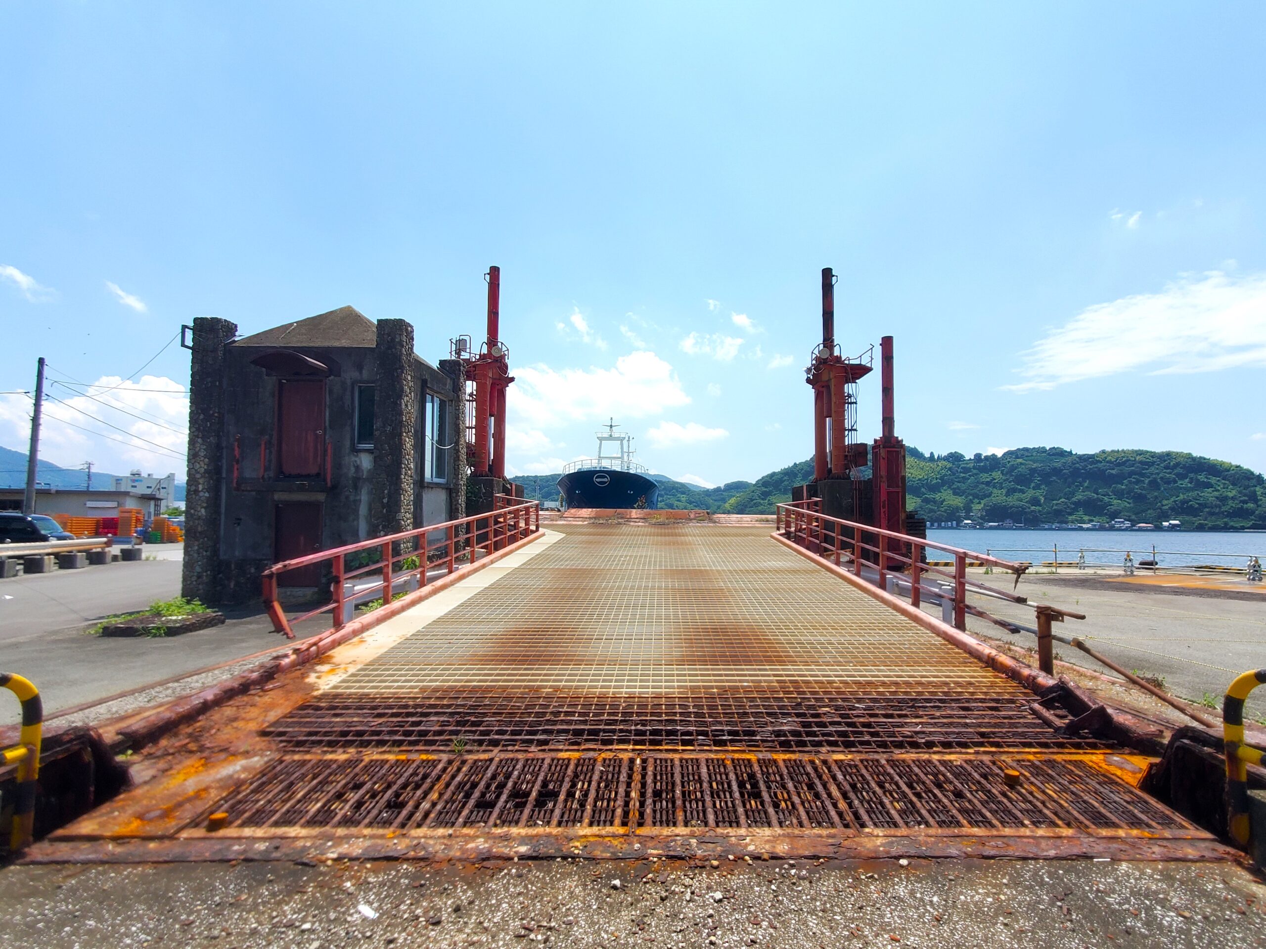 新海誠監督の映画『すずめの戸締り』にも使えそうなロケーションといえば言い過ぎか(笑)。調べると、平成12(2000)年10月31日をもって休止した宇和島・別府航路のフェリー桟橋でした。歴史的に見ると、その休止は明治以来115年続いた同港における九州航路の消滅を意味するようで、廃墟桟橋は海事遺産としての哀愁が漂っていました。現在、宇和島運輸フェリーは、八幡浜港を起点に別府・臼杵航路で九州と南予を結んでいます。船主は今治市波止浜出身で、筆者の中学同級生のお兄さんが社長ということは近年知った衝撃的事実であります。