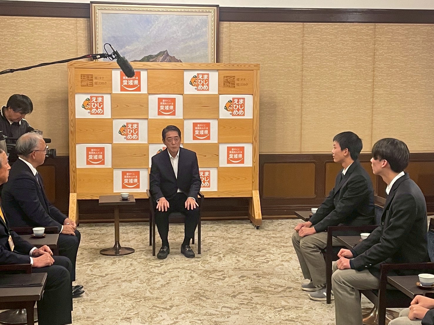 中村知事からは、「海ごみ対策に力を入れる愛媛代表としてぜひ優勝を目指してほしい」と温かい激励の言葉をいただきました。