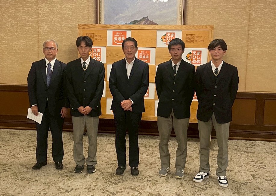 2025年9月23日(火・祝)に行われた『スポGOMI甲子園2025愛媛県大会』で優勝に輝いた、愛媛県立松山西中等教育学校 5年生(高校2年生)の「こっちもけんと」チームが、大会での成果を報告するため中村知事を11月19日に表敬訪問いたしました。